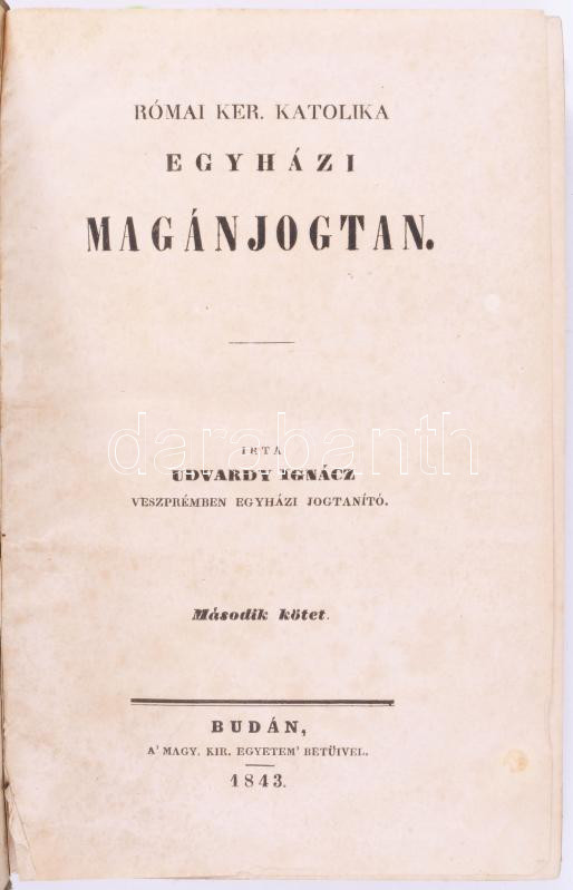 Udvardy Ignácz: Római ker. katolika egyházi magánjogtan. II. kötet. Bu... https://www.darabanth.com/en/516-Auction-philately-postcards-numismatics-artwork-books-collectibles-jewelry/520.0/Books/Books-Law~1089/Udvardy-Ignacz-Romai-ker-katolika-egyhazi-maganjogtan-II-kotet-Budan-1843-A-Magy-Kir~II3503505