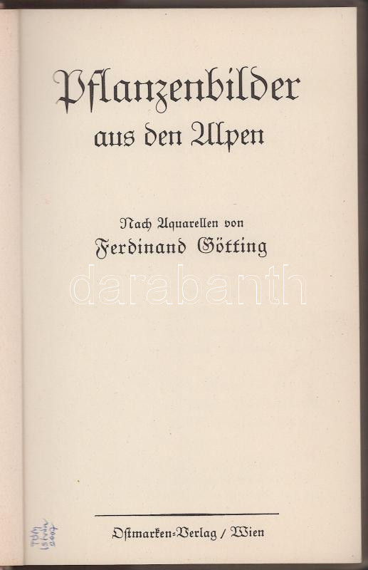 Götting, Ferdinand: Pflanzbilder aus den Alpen. Wien, Ostmarken-Verlag. Kiadói egészvászon kötés, kopott papír védőborítóval, jó állapotban.