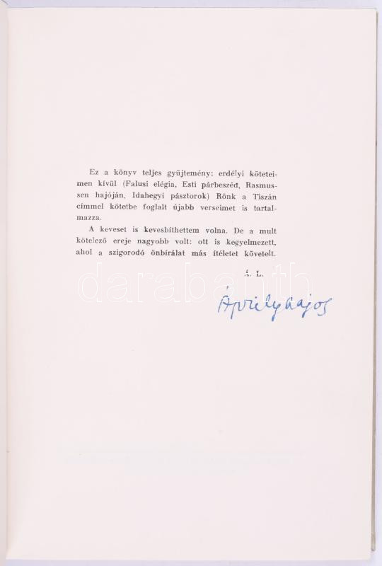 Áprily Lajos: Az aranymosó balladája. A szerző, Áprily Lajos (szül. Jékely János Lajos) (1887-1967) József Attila-díjas költő, műfordító által aláírt példány! Kecskemét, 1934, Első Kecskeméti Hírlapkiadó- és Nyomda Rt., 298+[2] p. Első kiadás. Kiadói félvászon-kötés, A címlapon tulajdonosi névbejegyzéssel.