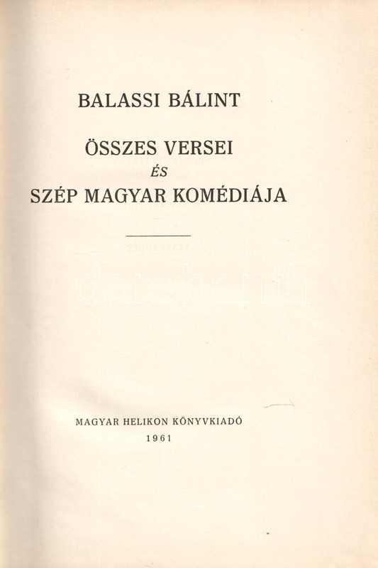 Balassi Bálint összes versei és Szép magyar komédiája. (Számozott.)