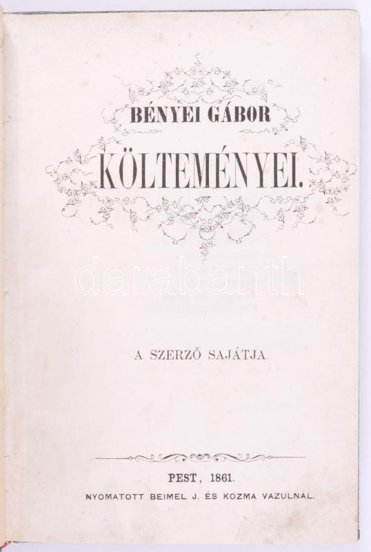 Pest, 1861. A szerző sajátja - Nyomatott Beimel J. és Kozma Vazulnál. 142 + [2] p. Egyetlen kiadás.