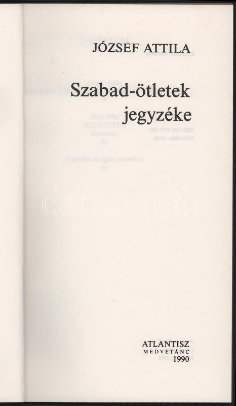 https://www.darabanth.com/en/516-Auction-philately-postcards-numismatics-artwork-books-collectibles-jewelry/520.0/Books/Books-Other-rarities~1106/Jozsef-Attila-Szabad-otletek-jegyzeke-Bp-1990-Atlantisz-Kiado-Kiadoi-papirkotes-kisse~II3500949
