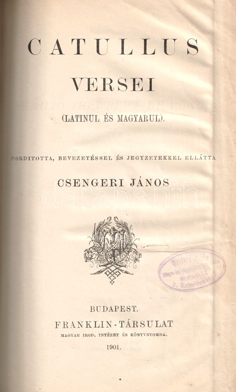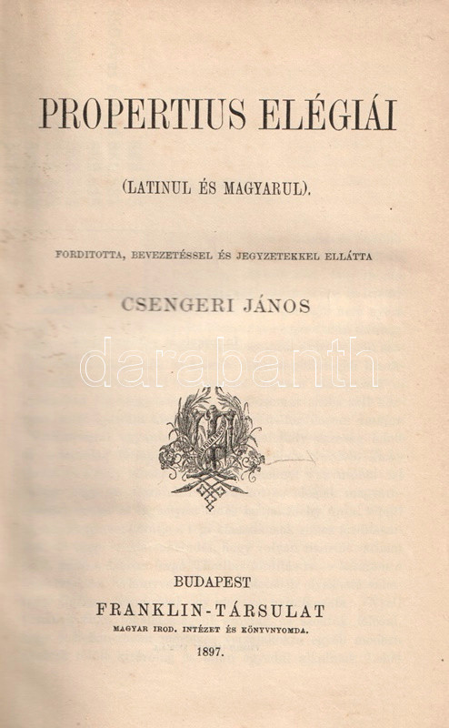 Propertius elégiái + Catullus versei. Latinul és magyarul. Fordította, bevezetéssel és jegyzetekkel ellátta Csengeri János. [Két mű egybekötve.]