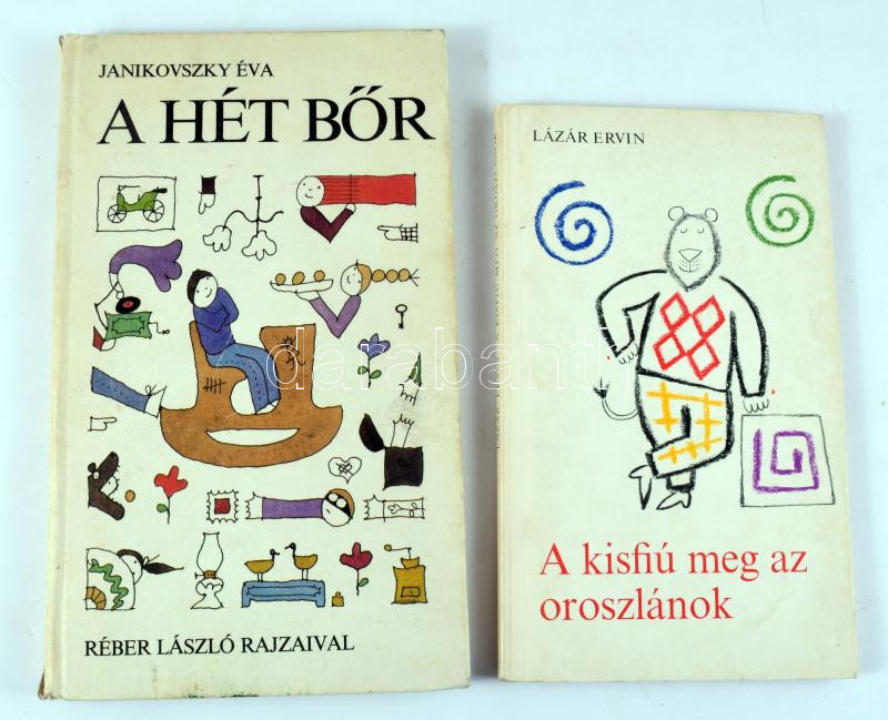 Description: 2 db mesekönyv: Lázár Ervin: A kisfiú meg az oroszlánok. Meseregény. Bp., 1982, Móra. Kiadói papírkötés. + Janikovszky Éva: A hét bőr. Réber László rajzaival. Bp., 1985, Ifjúsági Lap- és Könyvkiadó. Kiadói egészvászon-kötés, kissé foltos borítóval, kissé sérült gerinccel.