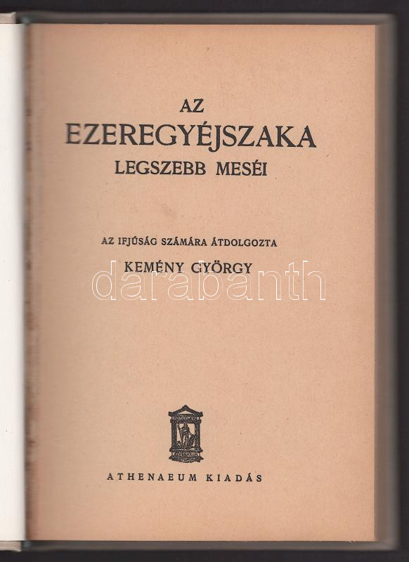 Description: Az ezeregy éjszaka legszebb meséi. Az ifjúság számára átdolgozta Kemény György. Bp., Athenaeum. Újrakötött egészvászon kötés, ráragasztva az eredeti papírborító, jó állapotban.