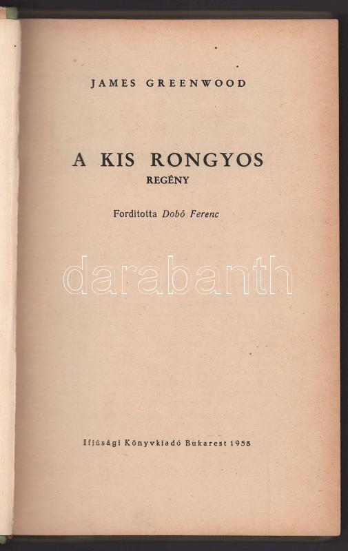 https://www.darabanth.com/en/516-Auction-philately-postcards-numismatics-artwork-books-collectibles-jewelry/520.0/Books/Books-Tales~1104/Greenwood-James-A-kis-rongyos-Bukarest-1958-Ifjusagi-Konyvkiado-Felvaszon-kotes-kopottas~II3502600