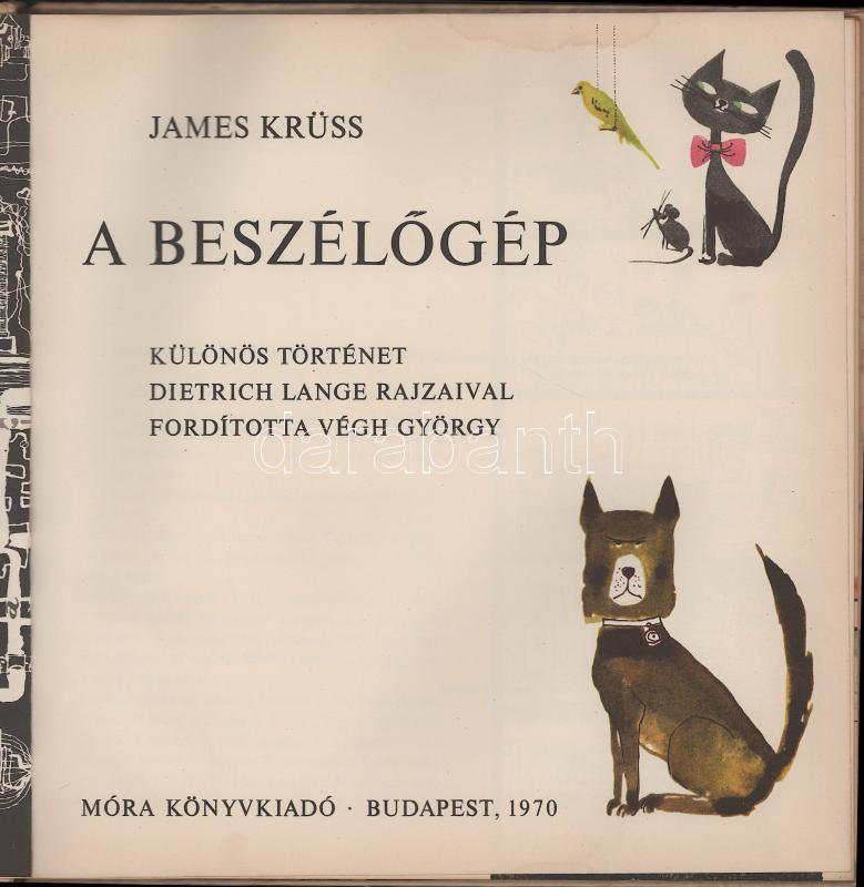 James Krüss: A beszélőgép. Különös történet. Dietrich Lange rajzaival.... https://www.darabanth.com/en/516-Auction-philately-postcards-numismatics-artwork-books-collectibles-jewelry/520.0/Books/Books-Tales~1104/James-Kruss-A-beszelogep-Kulonos-tortenet-Dietrich-Lange-rajzaival-Ford-Vegh-Gyorgy-Bp-~II3496357