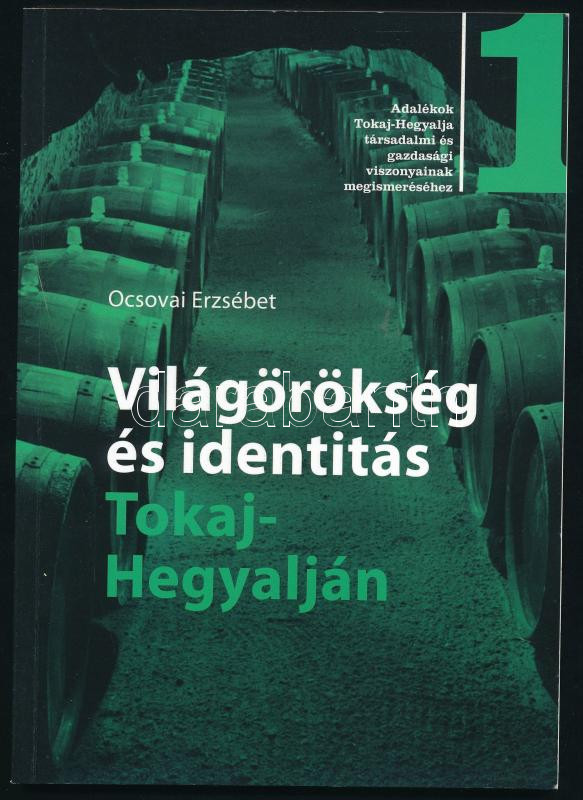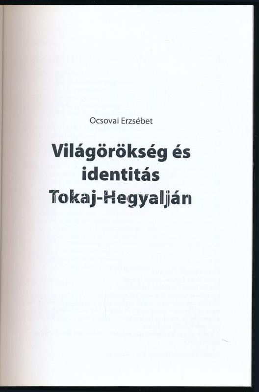 Ocsovai Erzsébet: Világörökség és identitás Tokaj-Hegyalján. Adalékok Tokaj-Hegyalja társadalmi és gazdasági viszonyainak megismeréséhez 1. Szerencs, 2015, Zempléni Múzeum, 79+[1] p. Kiadói papírkötés. Megjelent 300 példányban.