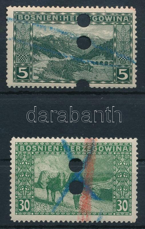 https://www.darabanth.com/en/516-Auction-philately-postcards-numismatics-artwork-books-collectibles-jewelry/520.0/Hungarian-philately-and-postal-history/Bosnia-and-Herzegovina~41/1906-5H-es-30H-12-12-fogazassal-megsemmisito-lyukasztassal~II3499939
