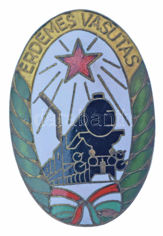 1970-1980. "Érdemes Vasutas" aranyozott, zománcozott kitüntető jelvénye (44x38mm) T:AU,XF kis zománchiba