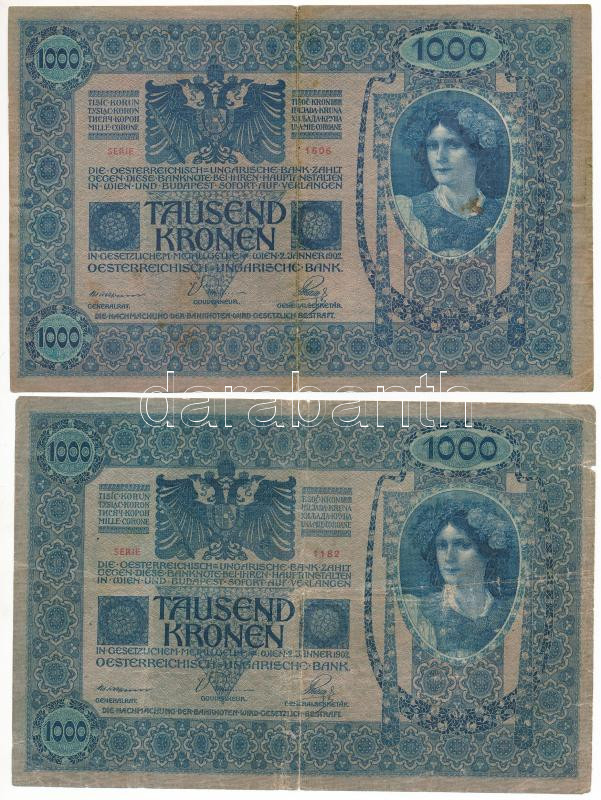 1902. 1000K felülbélyegzés nélkül + 1000K piros "MAGYARORSZÁG" felülbélyegzéssel T:F,VG
