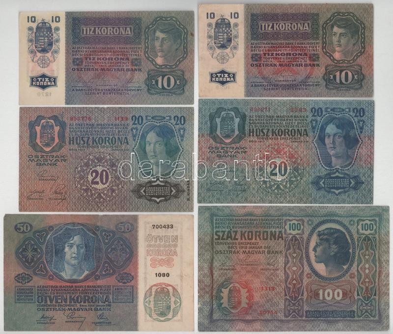 1912-1915. 10K-100K (4xklf) felülbélyegzés nélkül + 1913. 20K + 1915. 10K mindkettő piros "DEUTSCHÖSTERREICH" felülbélyegzéssel T:F,VG közte szép papír