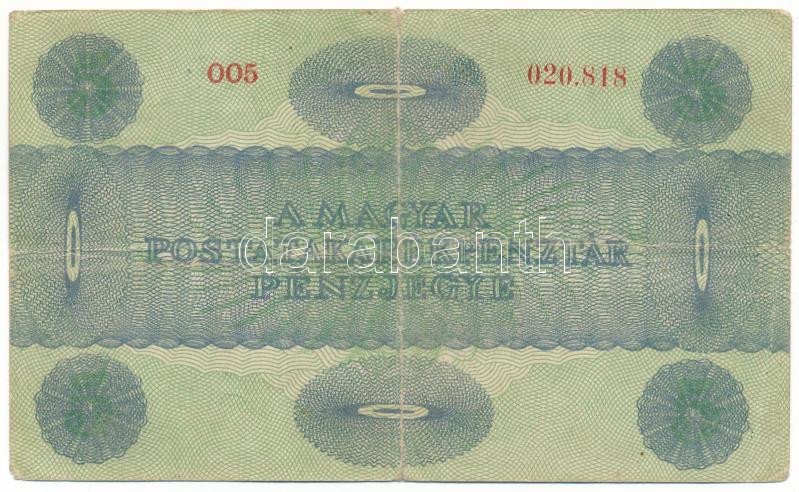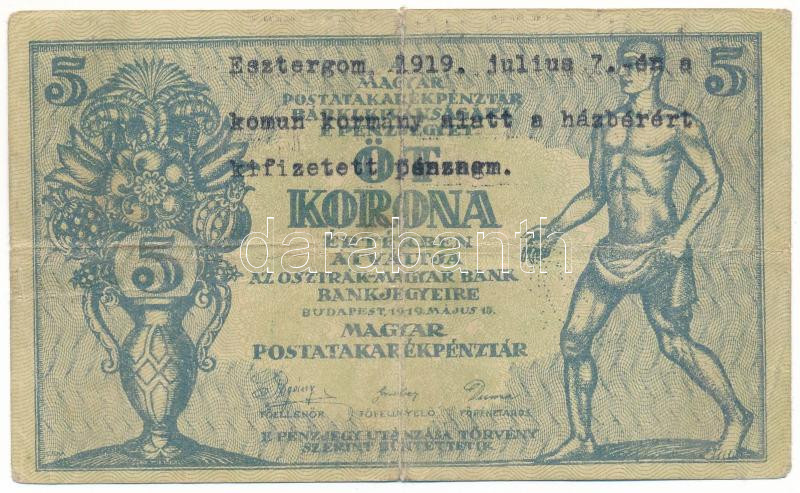 1919. 5K "MÁS TÖRVÉNYES...", "005 020.818" írógéppel írt "Esztergom 1919. julius 7.-én a komun kormány alatt a házbérért kifizetett pénznem" szöveggel T:VG