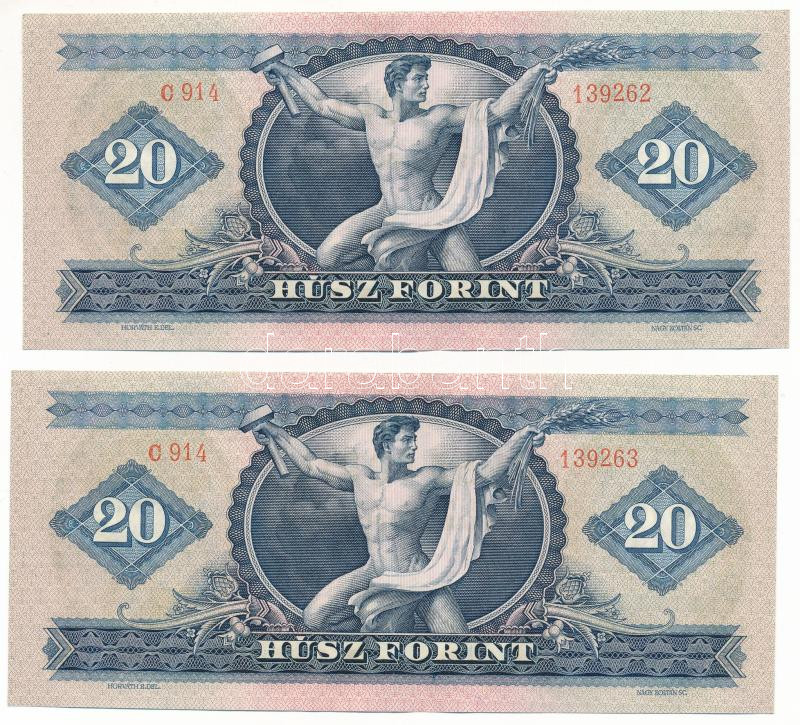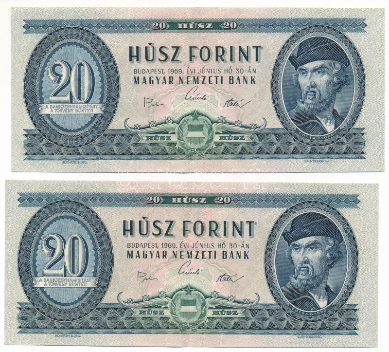 1969. 20Ft (2x) sorszámkövetők " C 914 139262 - C 914 139263" T:XF Adamo F15