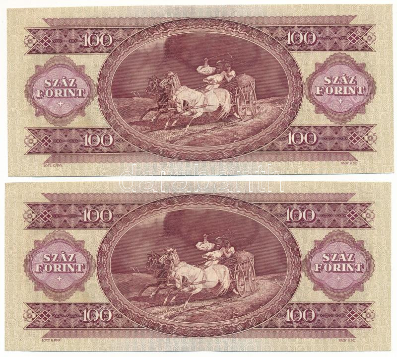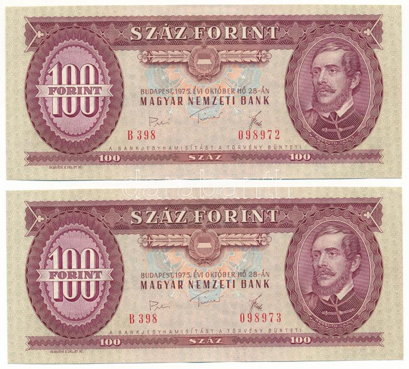 1975. 100Ft (2x) sorszámkövetők "B 398 098972 - B 398 098973" T:AU,XF