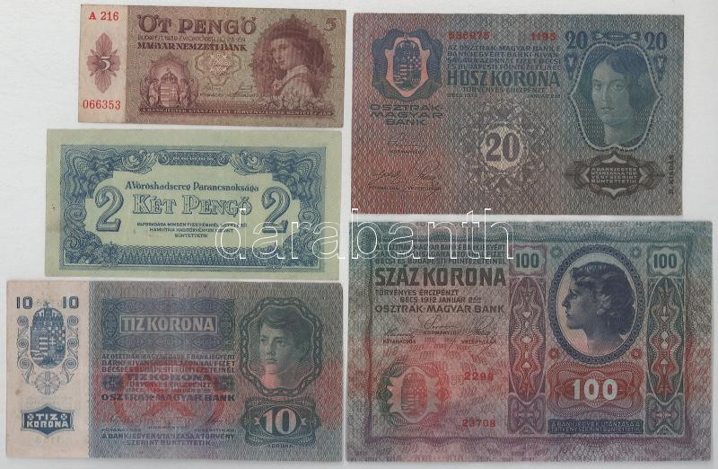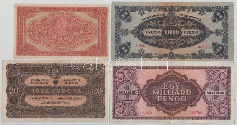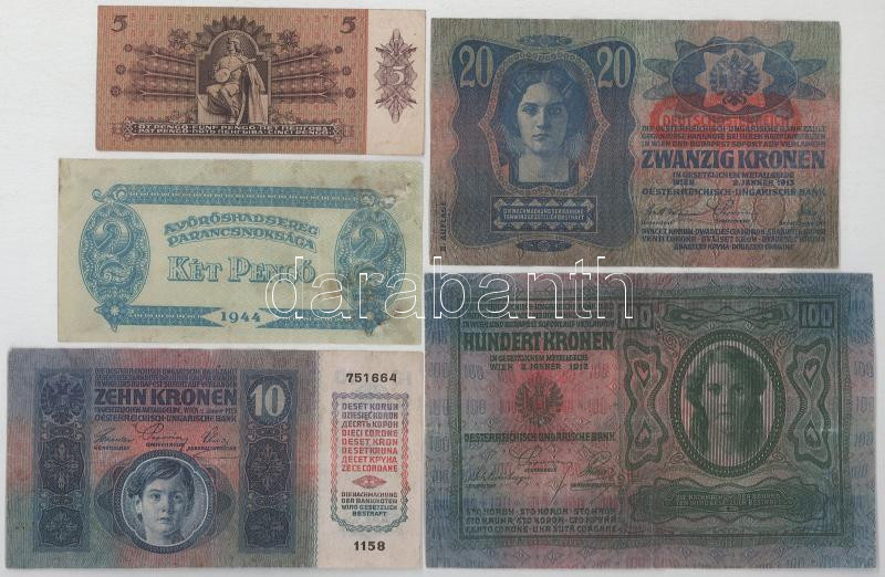 Vegyes 9db-os pengő és korona tétel: 1939-1946. 2P-1.000.000.000MP (4xklf) + 1912-1920. 2K-100K (5xklf) T:F közte egyiken kis szakasdás