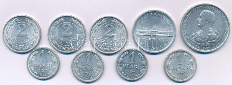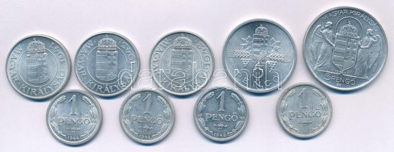 1941-1944. 1P Al (4xklf, közte:1943. 1P) + 1941-1943. 2P Al (3xklf) + 1943-1945. 5P Al (2xklf, közte:"Horthy balra") T:XF