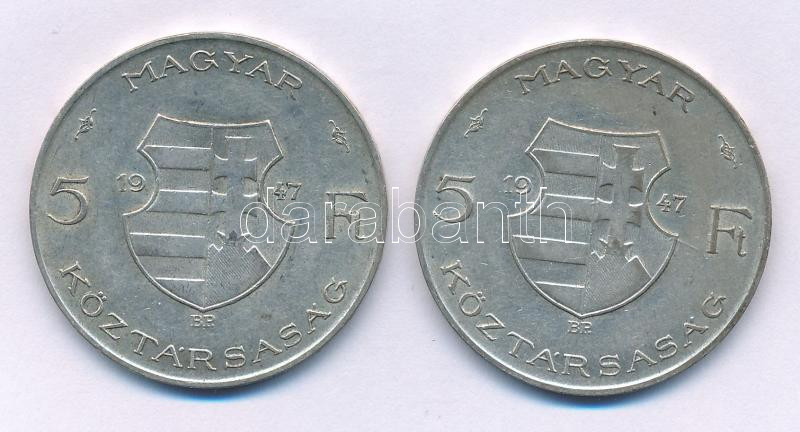 1947. 5Ft Ag "Kossuth" (2x) T:VF,F Adamo F8.1