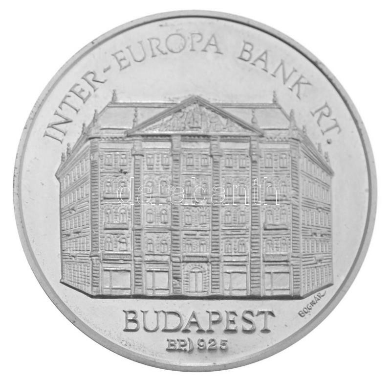 Bognár György (1944-) 1996. "Inter-Európa Bank Rt. - Budapest / Alapítása 15. évfordulójára 1981-1996" jelzett Ag emlékérem kapszulában, dísztokban T:AU (eredetileg PP) folt