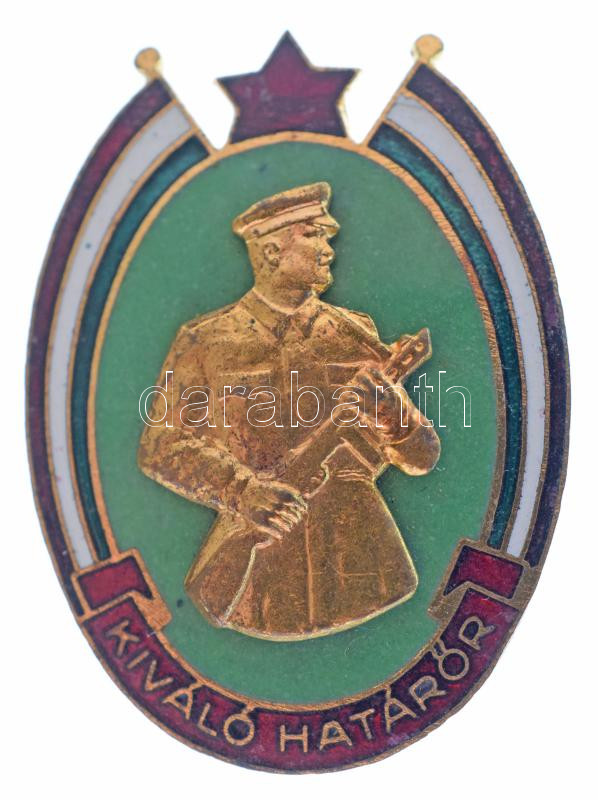 1970 k. "Kiváló Határőr" aranyozott, zománcozott jelvény, csavaros hátlappal (45x33mm) T:AU