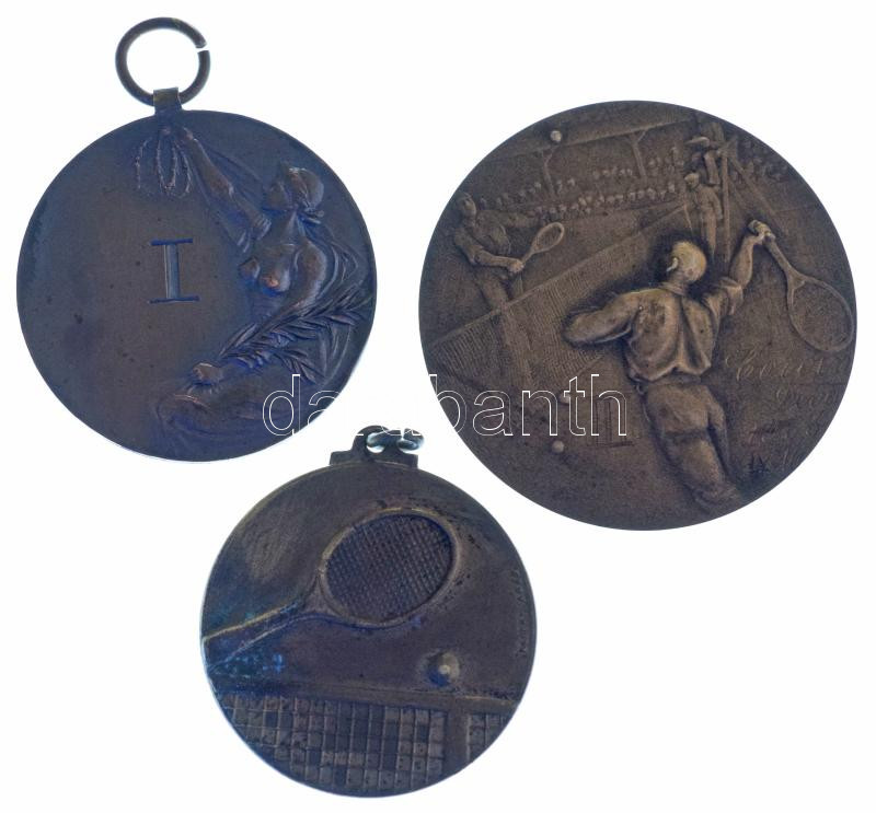 1932. "Maros Bridge verseny I. hely" kétoldalas bronz emlékérem gravírozással + 1933. "Tenisz" egyoldalas bronz lemezérem "Corvin Deva 1933. IV. 16. III." gravírozással + 1946. "Tenisz" kétoldalas bronz emlékérem, hátoldalon "I.T.A. 1946. III." gravírozással, Szign.: Albert Arad T:AU-XF