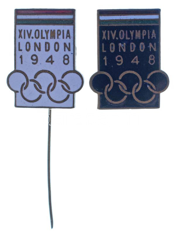 1948. "XIV. Olympia London 1948" (2xklf) zománcozott olimpiai gomblyuk jelvény és kitűző, fekete és fehér zománccal (23x18mm) T:AU