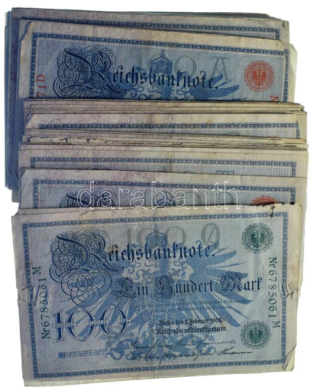 German Empire 1908. 100 Mark (~70pcs, mixed with red and green seals) C:F-G