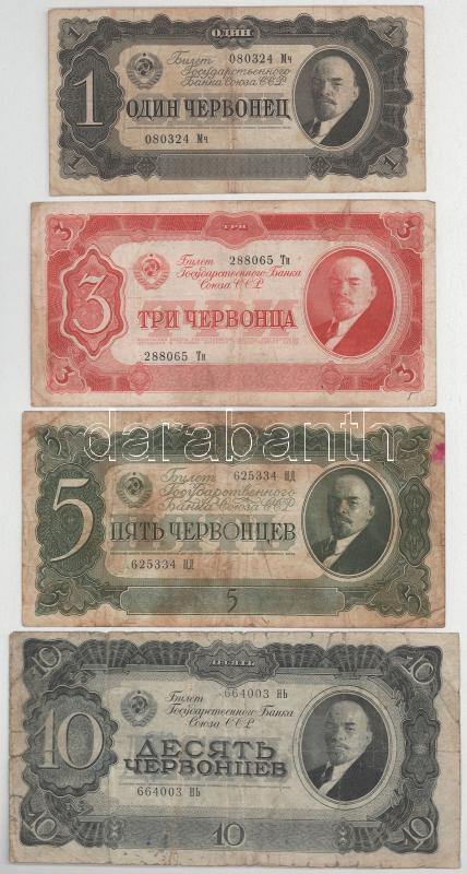 Soviet Union 1937. 1 Chervonetz + 3 Chervontsa + 5 Chervontsev + 10 Chervontsev C:VG