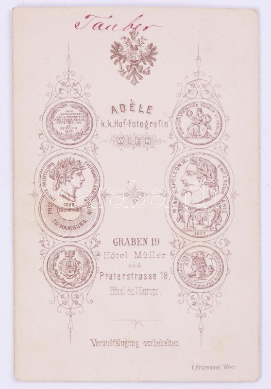 https://www.darabanth.com/en/516-Auction-philately-postcards-numismatics-artwork-books-collectibles-jewelry/520.0/Photography/Photo~1053/1869-Tauber-asszony-portreja-kemenyhatu-foto-Adele-becsi-mutermebol-10-5x6-5-cm~II3496579