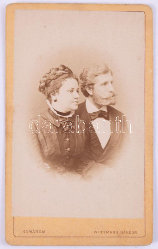 cca 1875 Házaspár portréja, keményhátú fotó Wittmann Nándor komáromi m...