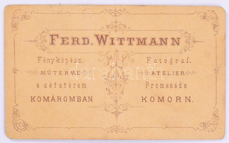 cca 1875 Házaspár portréja, keményhátú fotó Wittmann Nándor komáromi műterméből, 10,5×6,5 cm