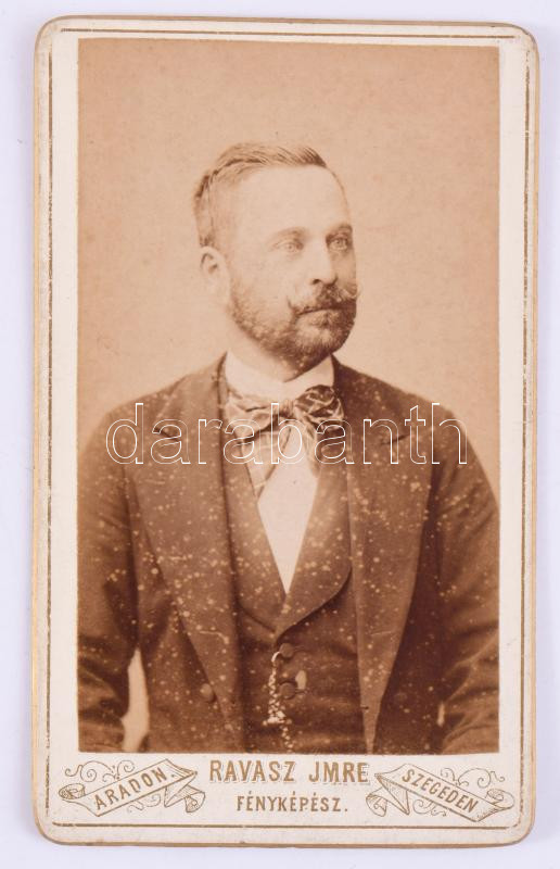 cca 1885 Férfiportré, keményhátú fotó Ravasz Imre (Arad/Szeged) műterm...