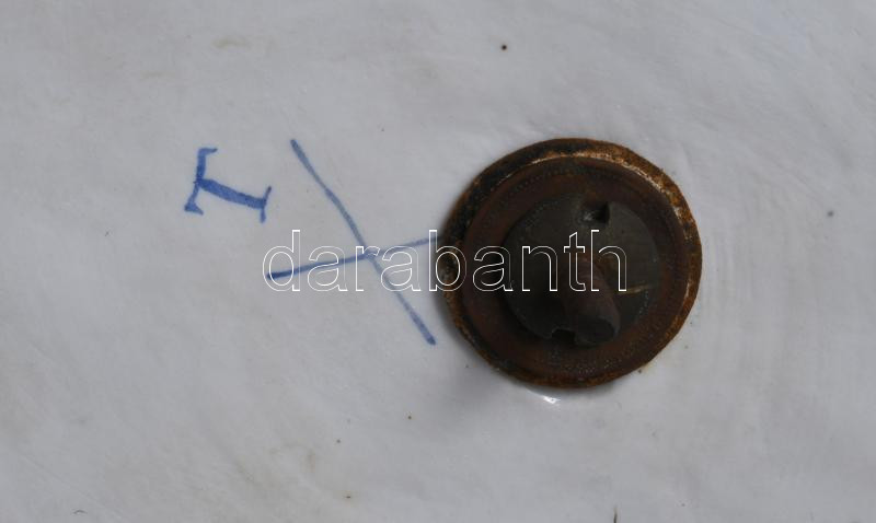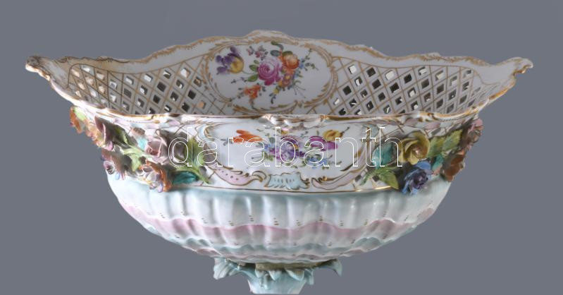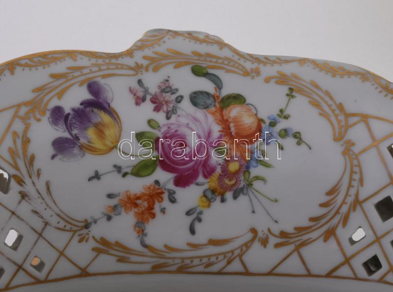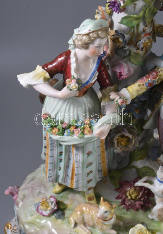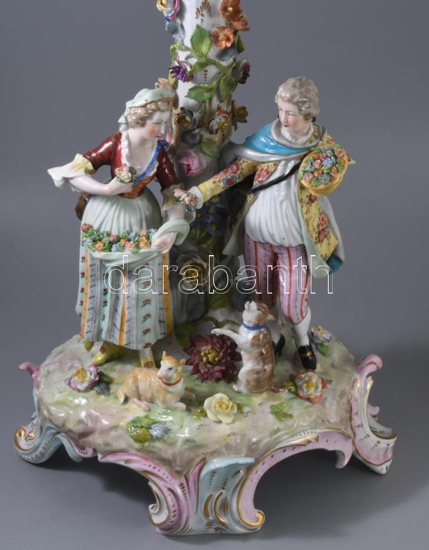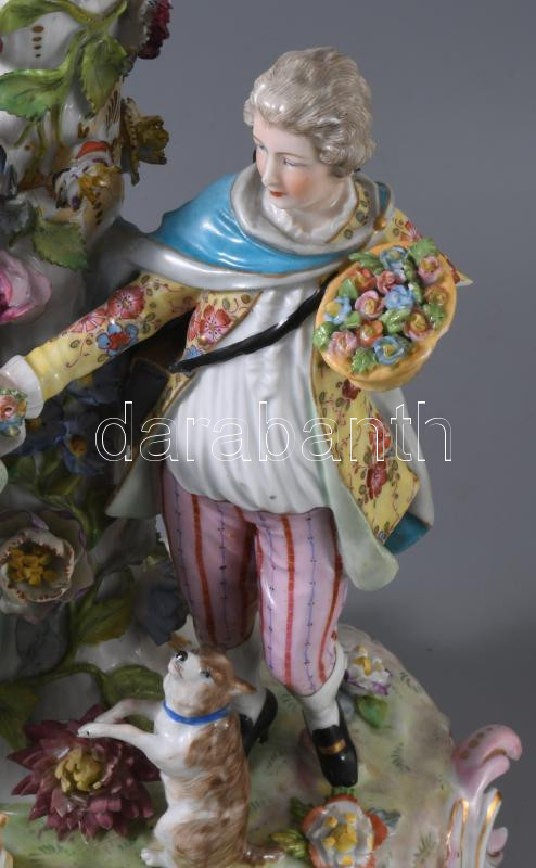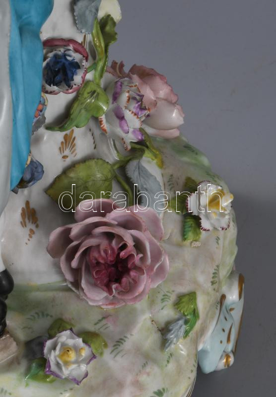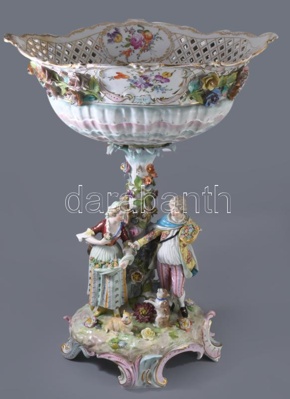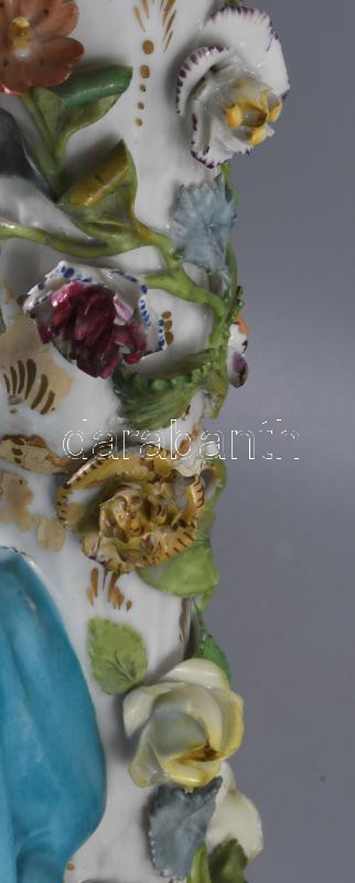 Alt Wien / Carl-Johann Gottlob Thieme (1823-1888) Potschappel hausmaler óriás aufsatz 1823-as évszámmal. Kézzel festett, plasztikus díszítéssel. Jelzett, restaurált, sérült, figura keze letört (megvan) apróbb lepattamások. m: 57 c, sz: 41 cm.