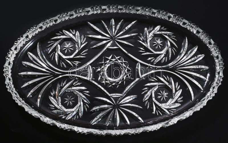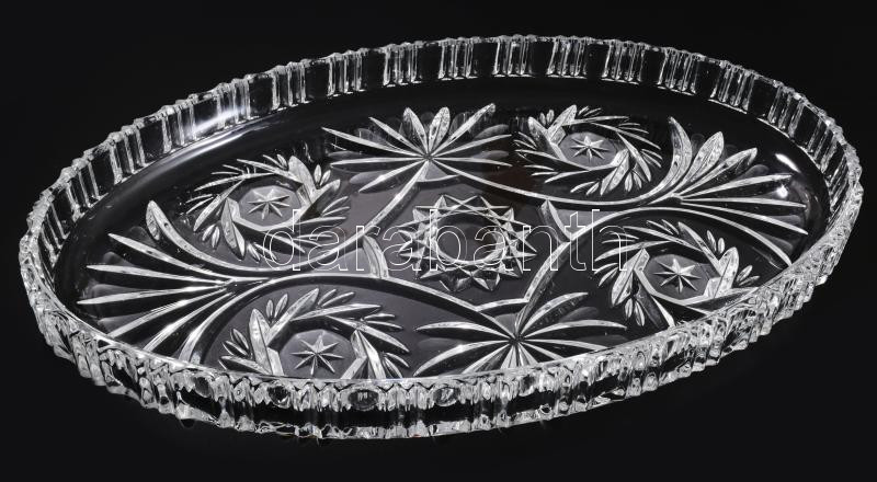 Ólomkristály ovális kínáló, gazdag mintával, hibátlan, 31x19 cm