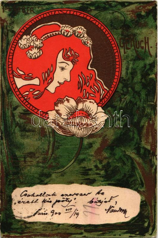 1900 Geruch / Art Nouveau lady. A. Sockl Vienne I. No. 875. litho s: Jos. Gaber (Rb)