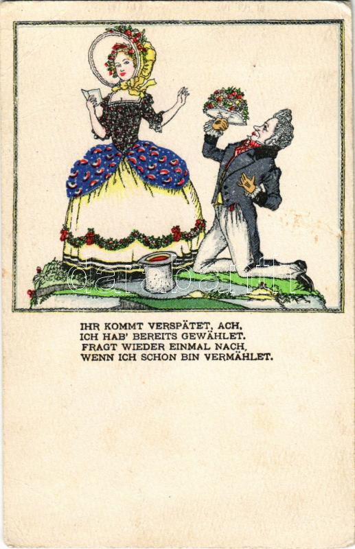 1919 Ihr kommt verspätet, ach... B.K.W.I. 897-1. / Romantic love couple art postcard (EB)