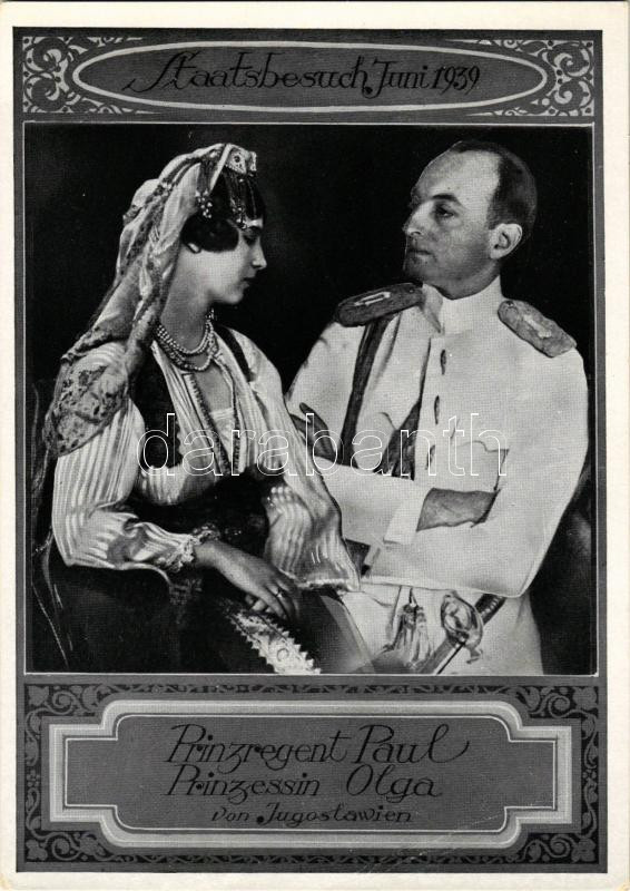 1939 Staatsbesuch in Berlin, Prinzregent Paul und Prinzessin Olga von Jugoslawien. Verlag Th. König / State Visit in Berlin by Prince Regent Paul and Princess Olga of Yugoslavia. + "Berlin 3. 6. 1939. Staatsbesuch des Prinzregenten Paul von Jugoslavien" So. Stpl. (fa)
