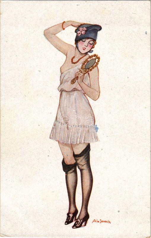 Rue de la Paix / Erotikus hölgy művészlap / Erotic lady art postcard. Marque L-E déposé Paris Série 18. s: A. Jarach (EK)
