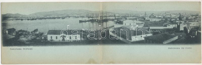 Piraeus, Peiraiás, Le Pirée; port, steamships. 2-tiled folding panoramacard (fl)