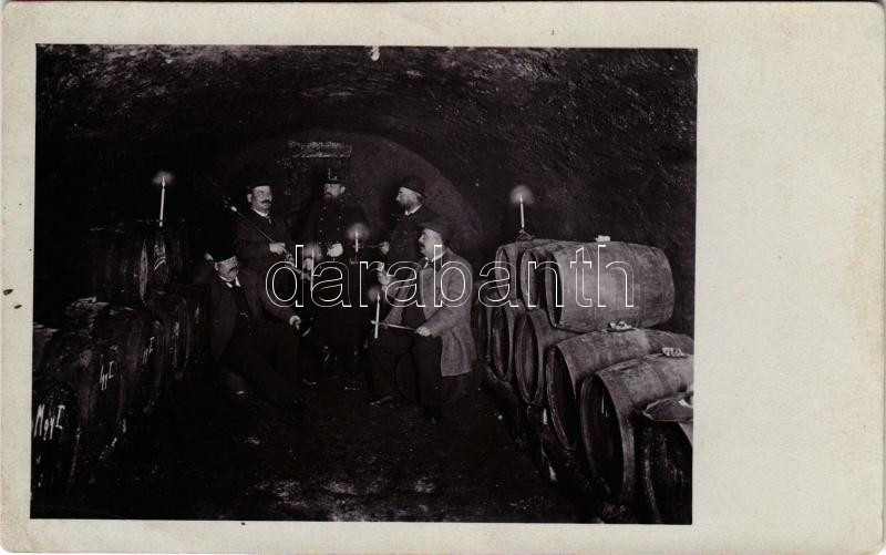 1903 Villány, borkóstolás próbagyertyákkal egy villányi pincében. photo (r)