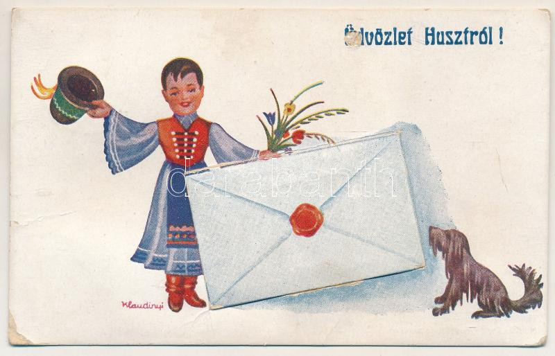 1944 Huszt, Chust, Khust; népviseletes leporellólap 10 kis képpel / Hungarian folklore leporellocard s: Klaudinyi (b)