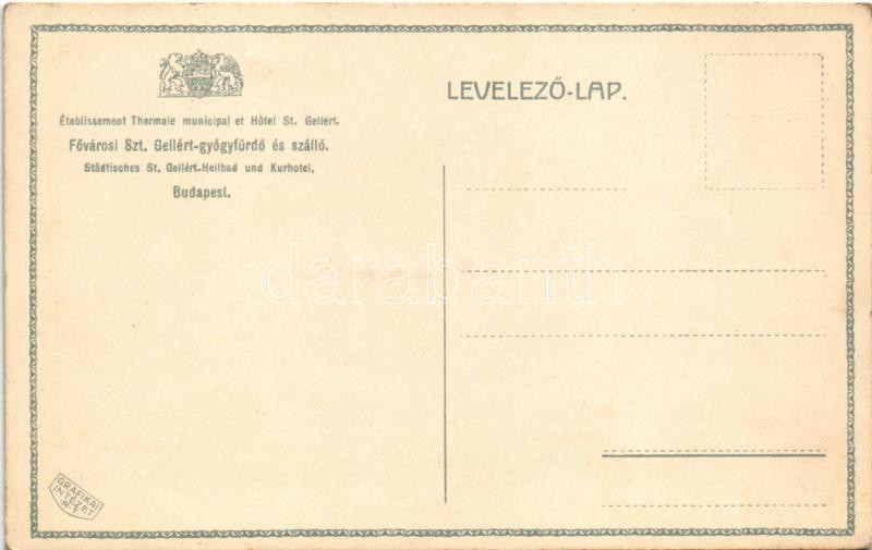 Budapest XI. Szent Gellért gyógyfürdő és szálló, télikert, belső. Grafikai Intézet R.T.