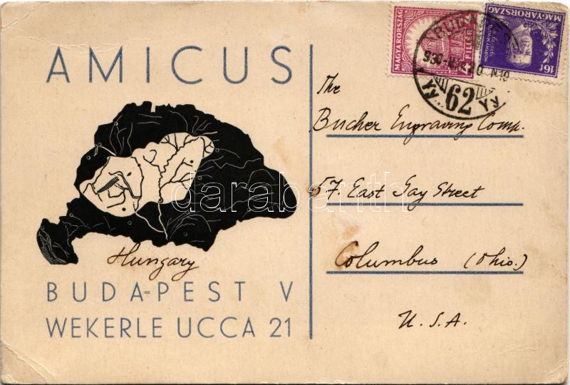 1930 Amicus vállalat irredenta levelezőlapja. Budapest V. Wekerle utca...