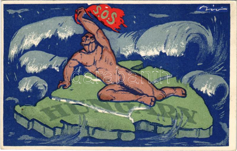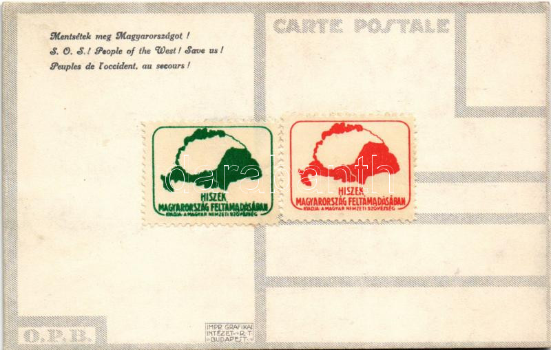 SOS Mentsétek meg Magyarországot! Kiadja az Országos Propaganda Bizottság. Impr. Grafikai Intézet R.T. / S.O.S. People of the West! Save us! Hungarian irredenta propaganda art postcard s: Biró (EK)