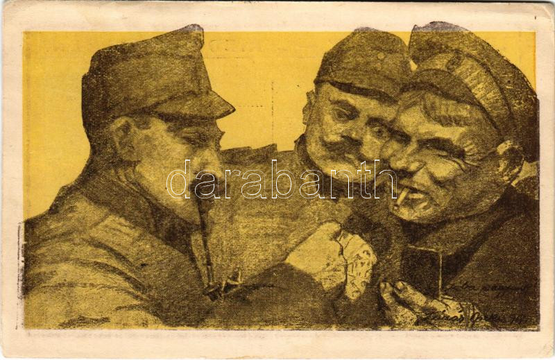 1918 "Jóba vagyunk!", I. világháborús magyar és orosz katona, Béke Lapok / WWI Hungarian and Russian soldier, peace propaganda s: Lázár Oszkár (EB)