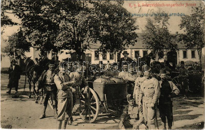 K.u.k. österreichisch-ungarische Armee / Osztrák-magyar katonák, tábori konyha / Austro-Hungarian K.u.K. military, field kitchen, group of soldiers (fa)