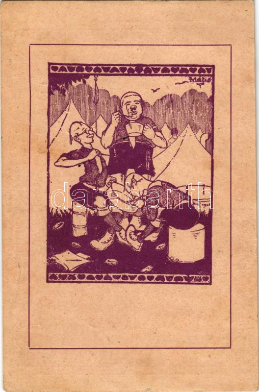 Fölséges egy étek. Kiadja a kecskeméti 110. Bethlen Gábor cserkészcsapat 1927. / Hungarian boy scout art postcard s: Mátis (EB)