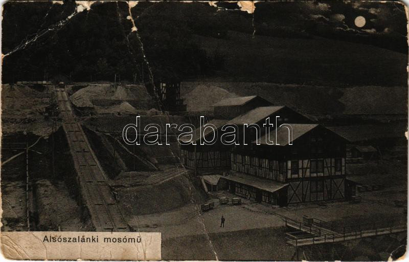 1919 Alsószalánk, Nizné Slovinky (Szepes); mosómű este holdfényben, bánya, iparvasút. Lipthay Elemér kiadása / washing plant at night in moonlight, mine, industrial railway (b)
