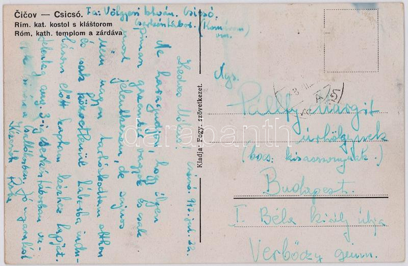 1943 Csicsó, Cicov; Rím. kat. kostol s klástorom / Római katolikus templom a zárdával. Kiadja a Fogyasztási szövetkezet / Catholic church with nunnery