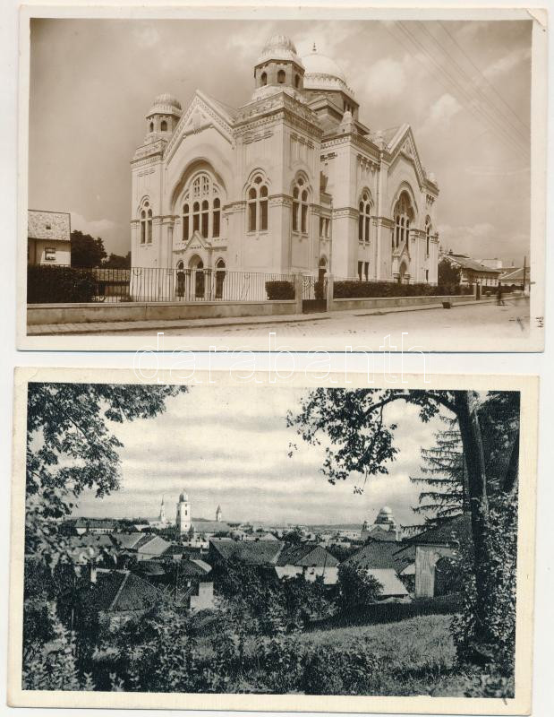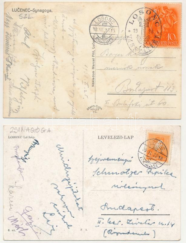 Losonc, Lucenec; - 2 db RÉGI város képeslap zsinagógával / 2 pre-1945 town-view postcards with synagogue